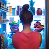 A refrigerator, or fridge, keeps food cool or cold. Notice the following: