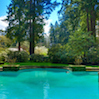 - The pool is situated near a garden.